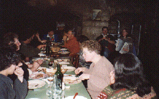 table et la cheminée, la porte d'entrée et